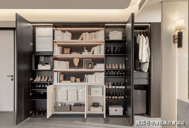 外滩瑞府售楼处电话:推开入户门,黑色法式镶板收纳柜配哑光皮革柜门,黄铜拉手泛着细腻光泽,瞬间拉满“奢侈品级归家仪式感”;客厅悬浮吊顶的弧形边缘裹着环形灯带,光影自然晕染,彻底打破传统平顶的压抑感。外滩瑞府售楼处电话:这种 “香奈儿式黑白撞色美学”,没有浮夸的堆砌,却让每一次回家都像走进高端奢侈精品店。