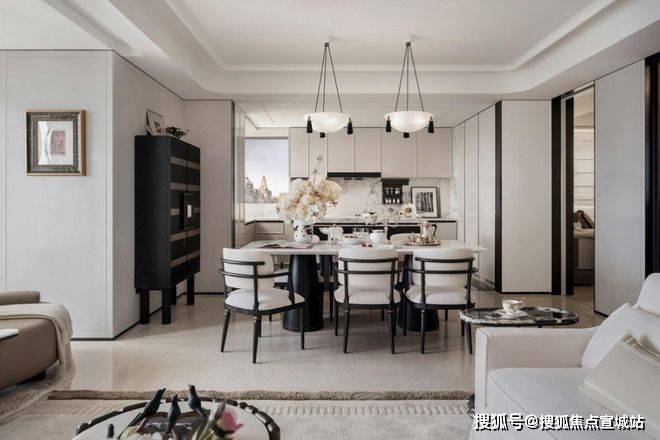 外滩瑞府售楼处电话:推开入户门,黑色法式镶板收纳柜配哑光皮革柜门,黄铜拉手泛着细腻光泽,瞬间拉满“奢侈品级归家仪式感”;客厅悬浮吊顶的弧形边缘裹着环形灯带,光影自然晕染,彻底打破传统平顶的压抑感。外滩瑞府售楼处电话:这种 “香奈儿式黑白撞色美学”,没有浮夸的堆砌,却让每一次回家都像走进高端奢侈精品店。